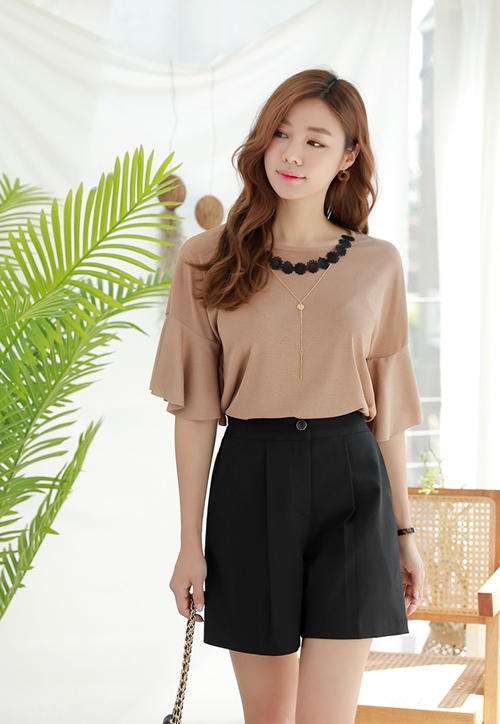So với quần short thông thường, kiểu short giả váy với lớp trong là quần, thêm một lớp ngoài là vạt liền mô phỏng chân váy sẽ giúp phái đẹp tự tin hơn khi mặc tới nơi làm việc. Bạn có thể mix short giả váy với sơ mi, thêm giày cao gót để trông thanh lịch, duyên dáng hơn. Ưu điểm của item này là vừa có thể mặc tới công sở, lại vừa có thể diện ra ngoài dạo phố đều rất trẻ trung, nữ tính.