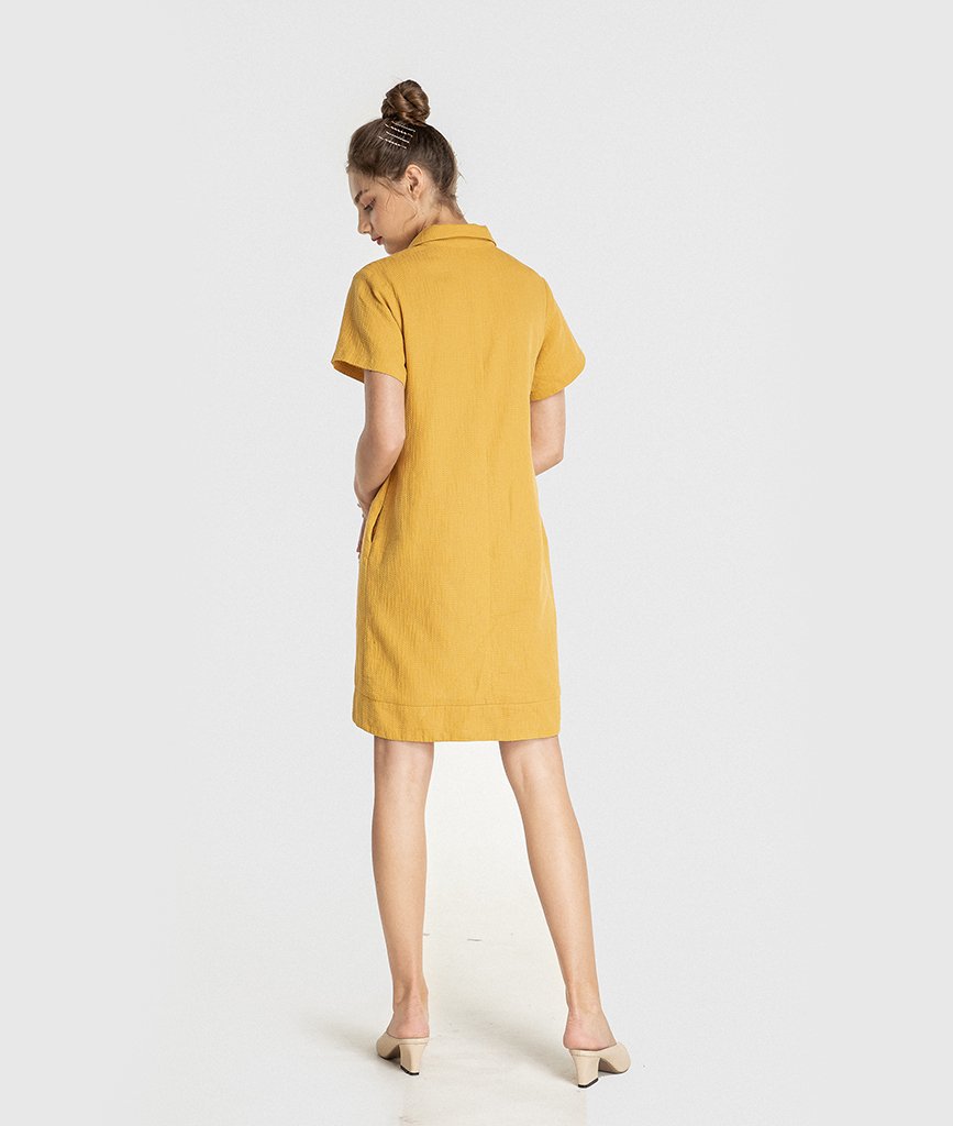 Miêu tả: Đầm sơ mi tay ngắn cài nút xéo.
